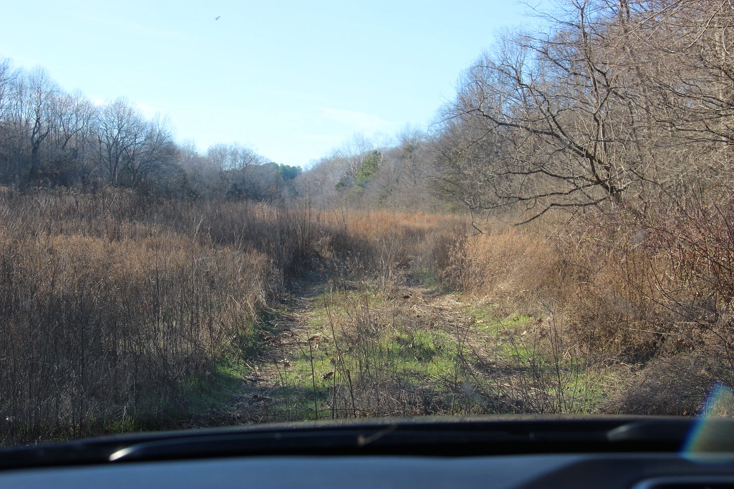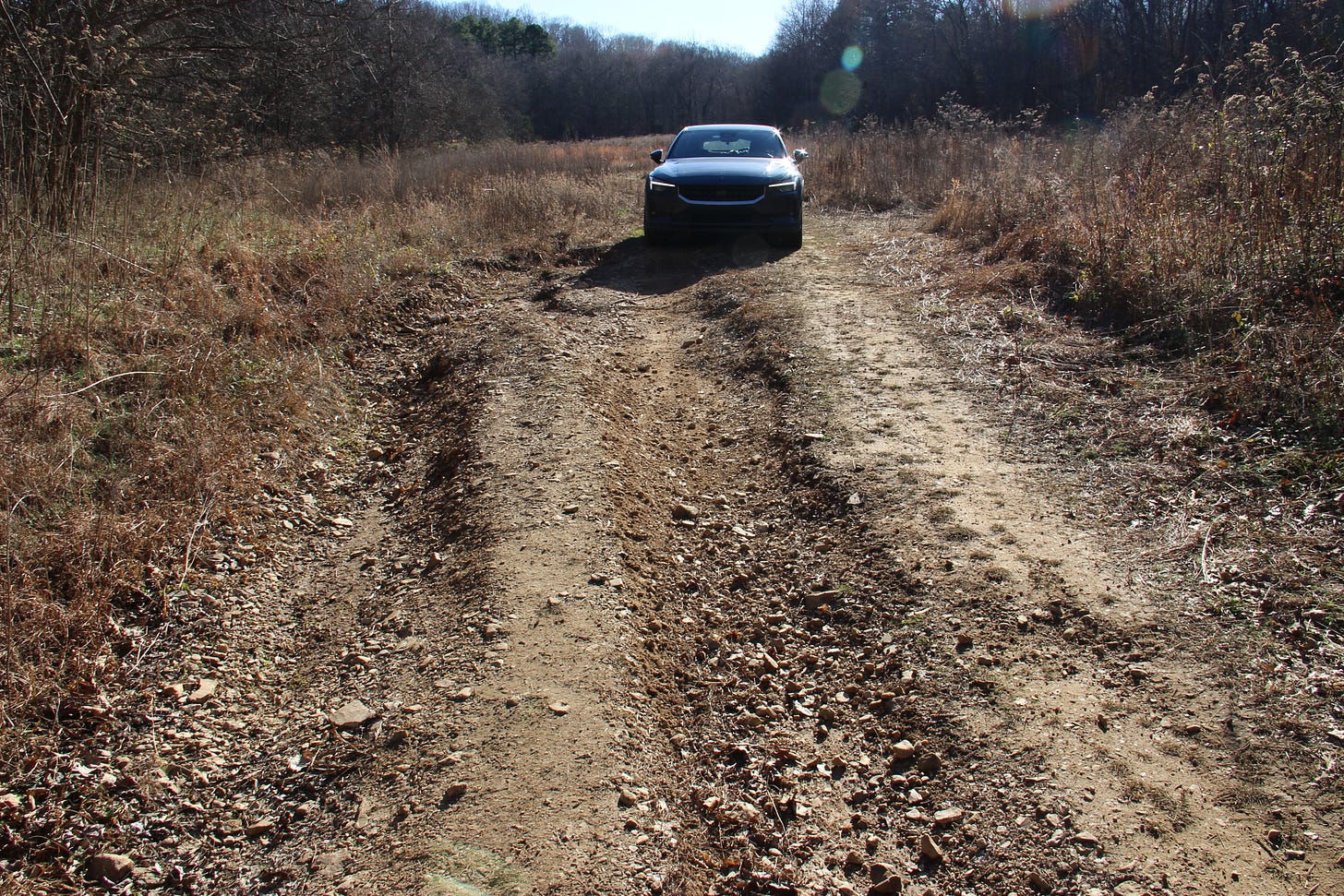 I had come to a point of no return, where the descent made it impossible to return uphill in the mud and the path forward was too much for my front wheel drive car. I saw no choice but to continue forward, and as I came to a massive ditch in the trail, it is there I found an escape path. Unmarked, overgrown, with the tire paths almost invisible. But it led me back to the main road and I have that off-the-map trail to thank for not risking my safety.