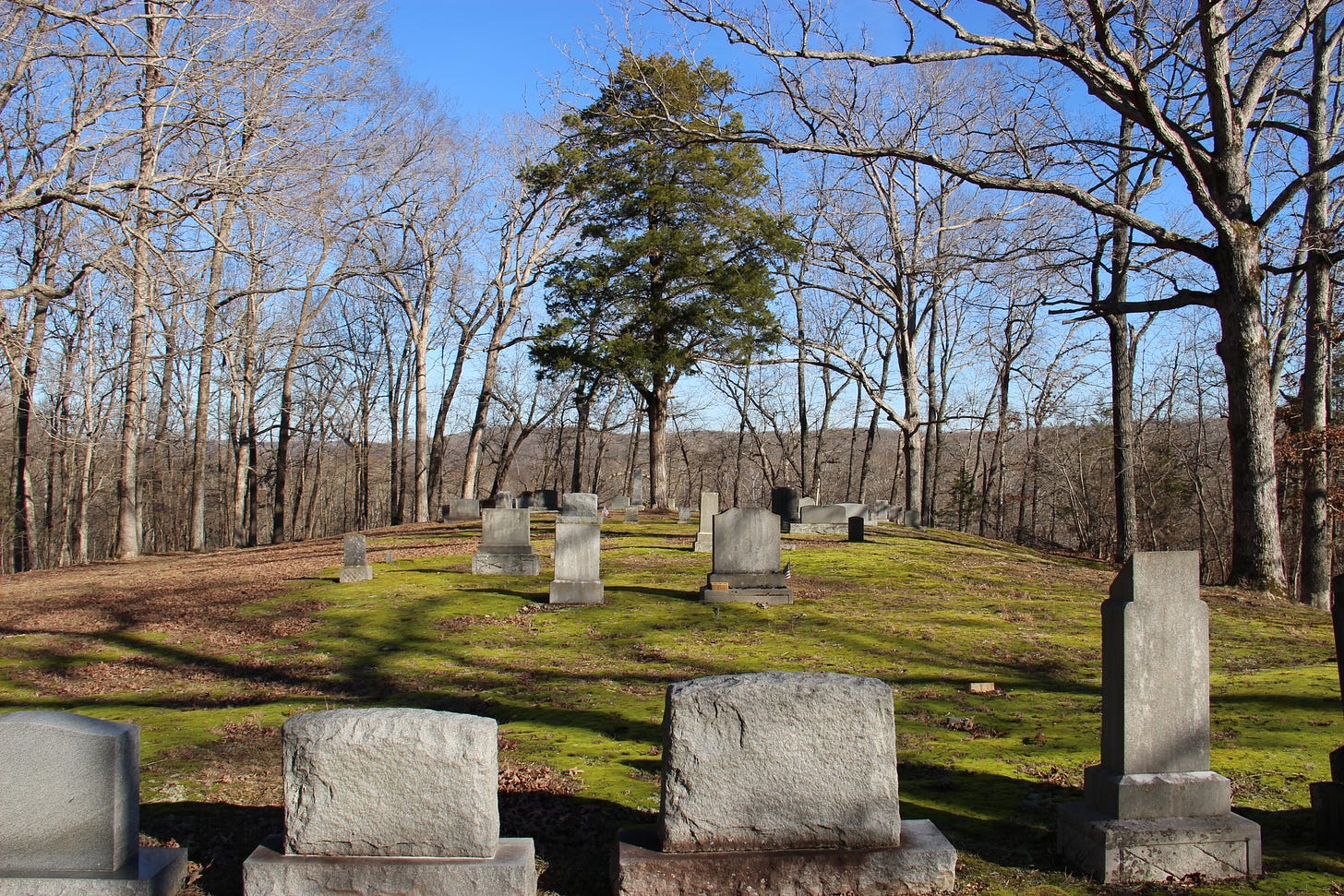 After tooling around, trying to find a good place for lunch and getting diverted by flooded roads, I eventually found a sign pointing uphill to a cemetery. Naturally, I followed the sign and went up the steepest, loosest grade my car has ascended to date, and was met with a picturesque cemetery atop a hill. The perfect place for lunch!